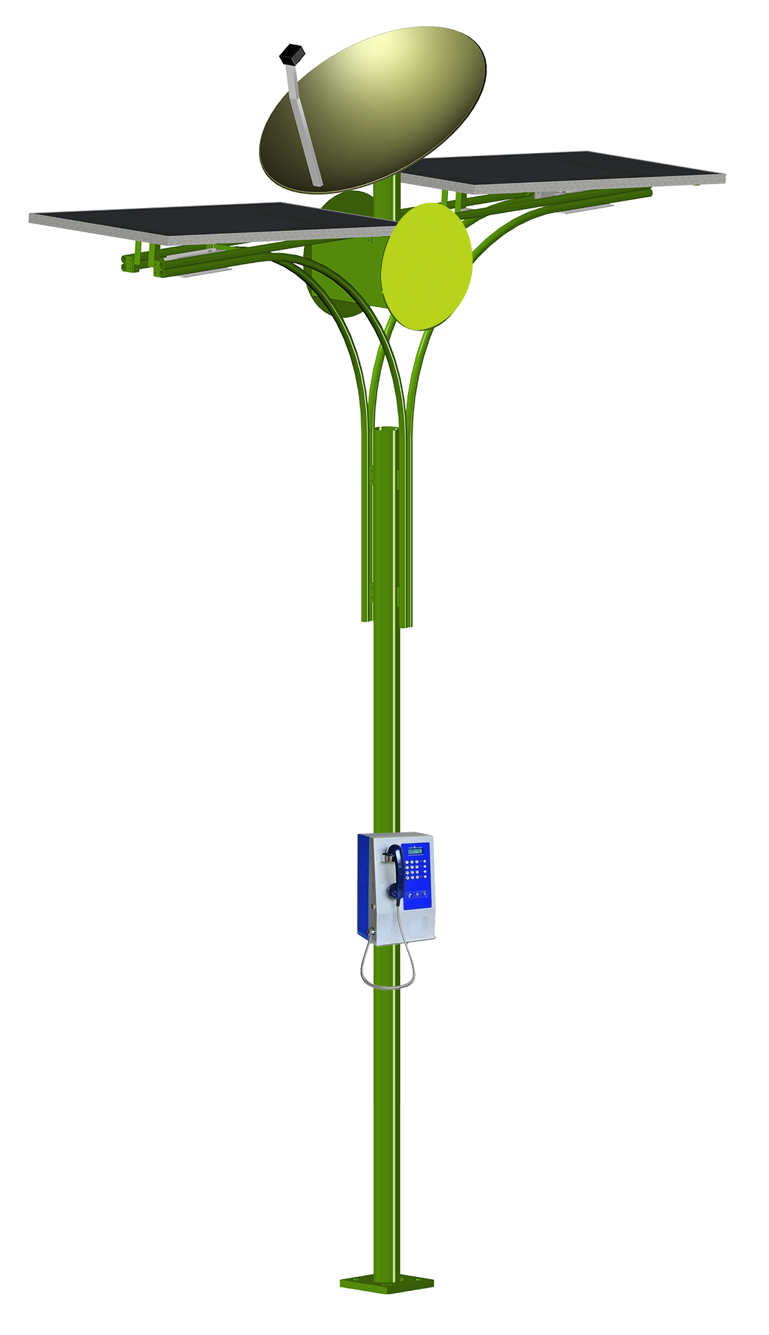Nous étudions la possibilité d’une offre permettant de disposer d’un Kit comprenant un mat, équipé de la parabole et du démodulateur, avec deux panneaux solaires, et d’un ou deux téléphones. Ce kit sera révolutionnaire dans le fait qu’il sera parfaitement autonome et permettra de s’affranchir d’une source d’électricité. Il sera même possible d’avoir une borne internet sur ce kit avec clavier et écran.
