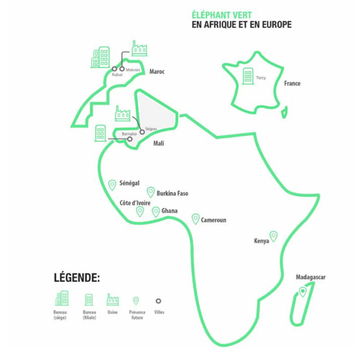 Présent au Maroc, Mali, Sénégal, Burkina Faso et prochainement en Côte d’Ivoire, le Groupe ÉLÉPHANT VERT participe chaque jour à l’avènement d’une agriculture performante, saine et durable pour tout le continent africain. Le groupe s’efforce de d’apporter une réponse concrète à la réduction du bilan carbone en préservant la fertilité des sols, les ressources en eau, et la biodiversité.
