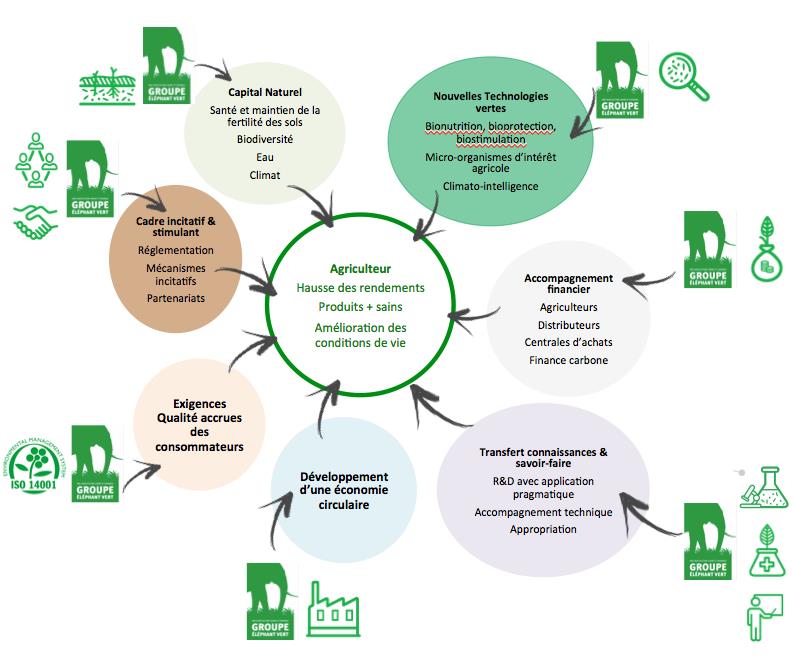 Face à ce constat qui paraît d’une grande injustice pour l’Afrique, nous devons dès aujourd’hui adopter des solutions pour une véritable économie verte, qui permettra de poursuivre son développement durable (économique, social et environnemental). Dans le secteur agricole, le Groupe ÉLÉPHANT VERT à fait le choix d’une agriculture climato-intelligente, ce qui veut dire proposer des solutions qui permettront aux agriculteurs d’intensifier la production tout en garantissant la protection de l’environnement et la santé.