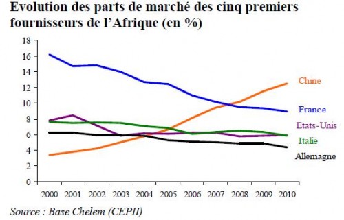 Les pays émergents : Aujourd’hui nous avons perdu notre place, l’Afrique s’émancipe et se place ainsi sur le devant de la scène. C’est positif pour l’ensemble des pays contributeurs, l’Afrique ne va plus négocier avec ses amis de longues dates, les Français, mais avec les Chinois, les brésiliens, et les relations changeront avec les années. Cela permettra aux Africains de prendre le meilleur de l’offre mondiale. Et à nous, Français, de nous replacer sur l’échiquier Africain des affaires.