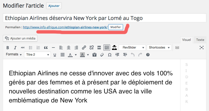 7. Modifiez le permalien (l’URL ou adresse qui mènera à votre article sur Internet) cette étape sera détaillée plus bas
