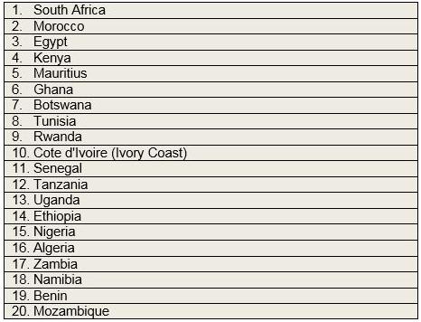 Le top 20 des pays classés dans le baromètre EY de l’attractivité de l’Afrique est le suivant :