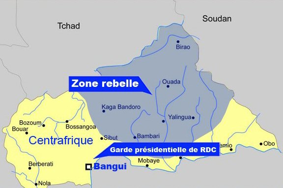 Désormais présente à l’est et au nord de Bangui, la rébellion qui avait affirmé au début des hostilités, le 10 décembre, ne pas vouloir marcher sur la capitale, s’en approche désormais dangereusement, ne rencontrant que peu de résistance dans son avancée. Bangui est située à la frontière du Congo Brazzaville et de la République démocratique du Congo.