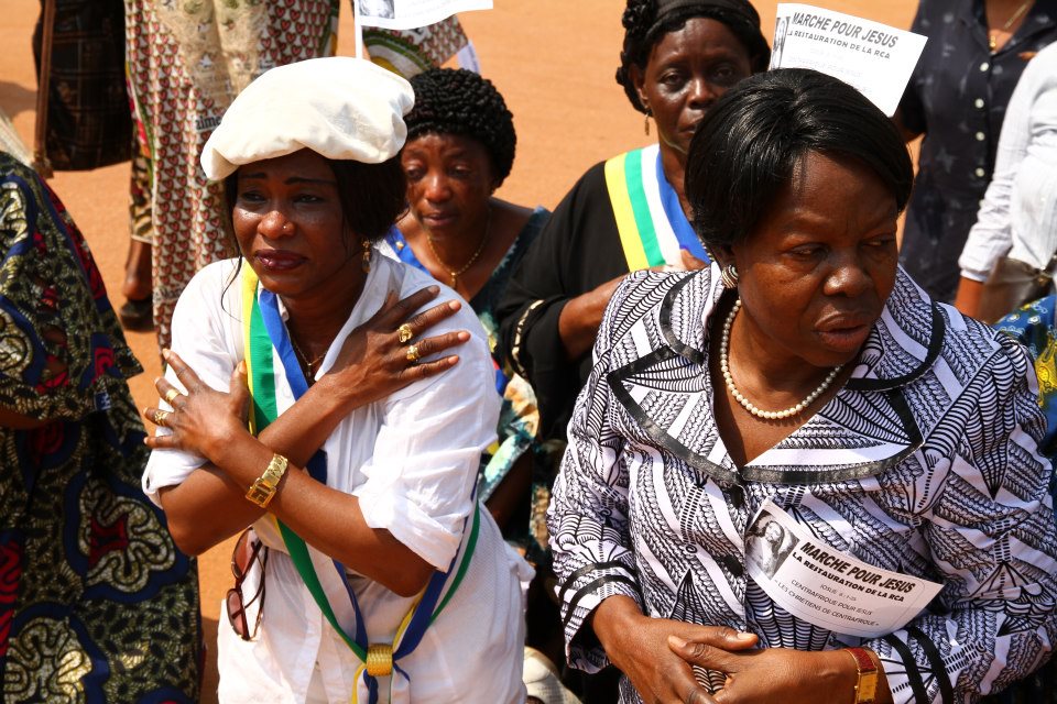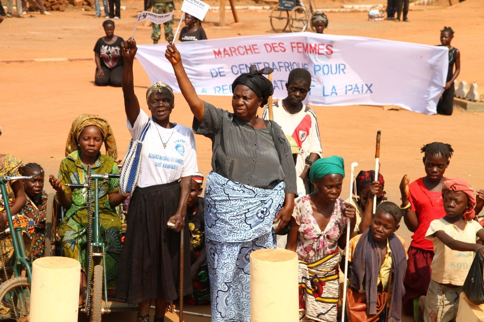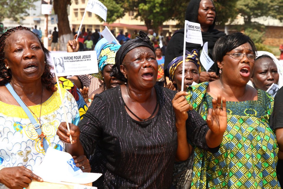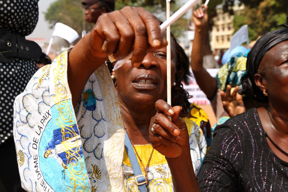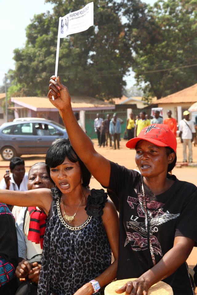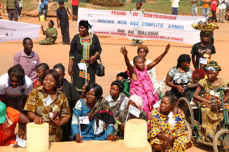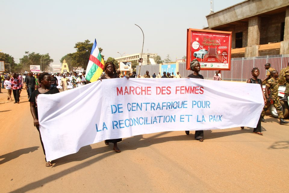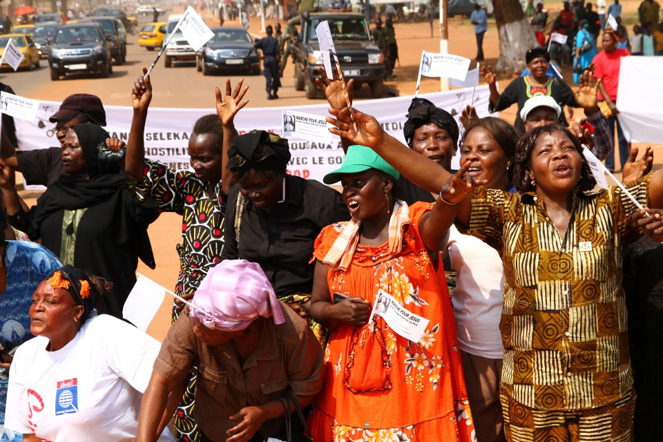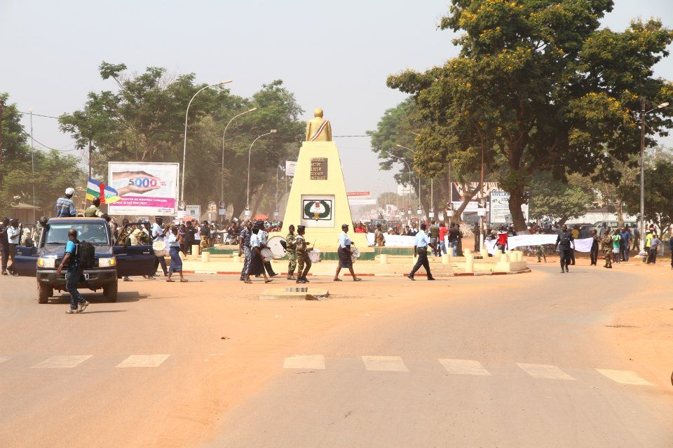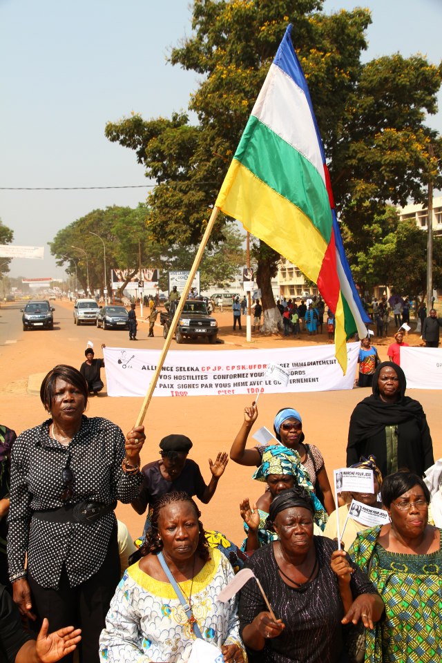 Précédées par une fanfare et encadrées par des forces de l’ordre, les manifestantes ont parcouru le centre-ville, s’arrêtant brièvement devant la délégation de l’Union européenne. Sur la place Barthélémy Boganda, « père de l’indépendance » de la Centrafrique, elle se sont toutes mises à genou pour entonner l’hymne national. Sur la banderole principale on pouvait lire : « Alliance Séléka, cessez immédiatement vos hostilités. Conformez-vous aux accords de paix signés par vous-mêmes avec le gouvernement. Trop c’est trop ». Elle ont ensuite été accueillies à la place de la République, au centre de la capitale, par le premier ministre Faustin Archange Touadera, à qui elles ont remis un mémorandum pour le président Bozizé.