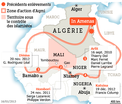 Mercredi avant l’aube, vers 4h30 du matin, un groupe terroriste a attaqué un site du groupe pétrolier britannique BP, à In Amenas, à 1500 kilomètres au sud-est d’Alger, à la frontière avec la Libye, une région connue pour être une zone de trafic.