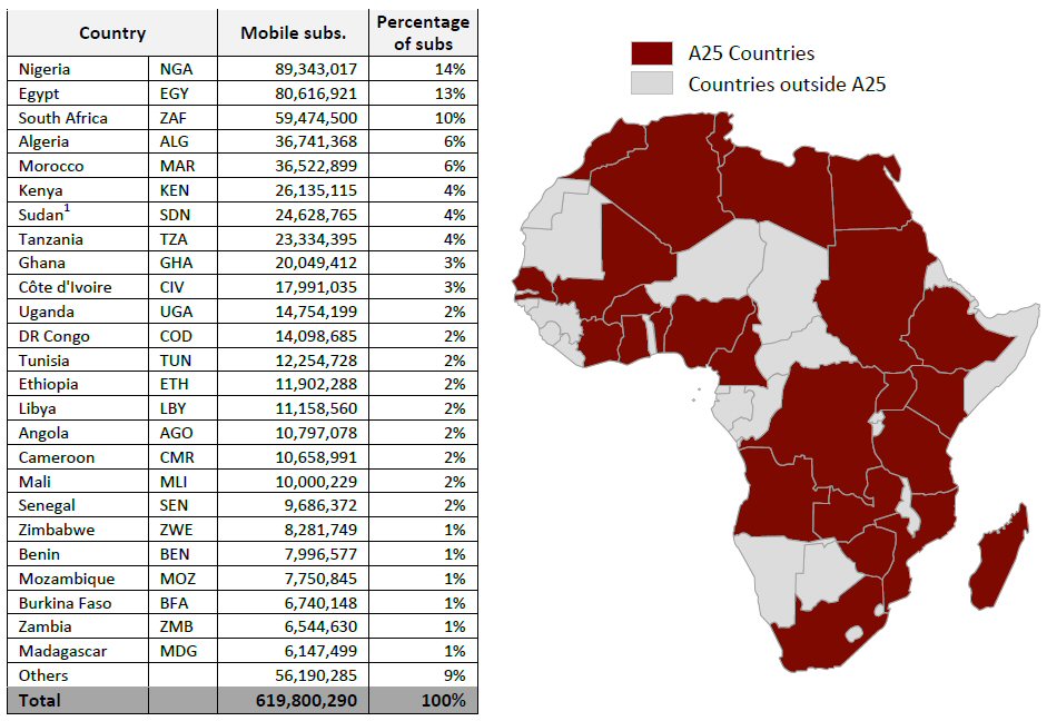Chiffres des pays TOP 25 des télécoms en Afrique