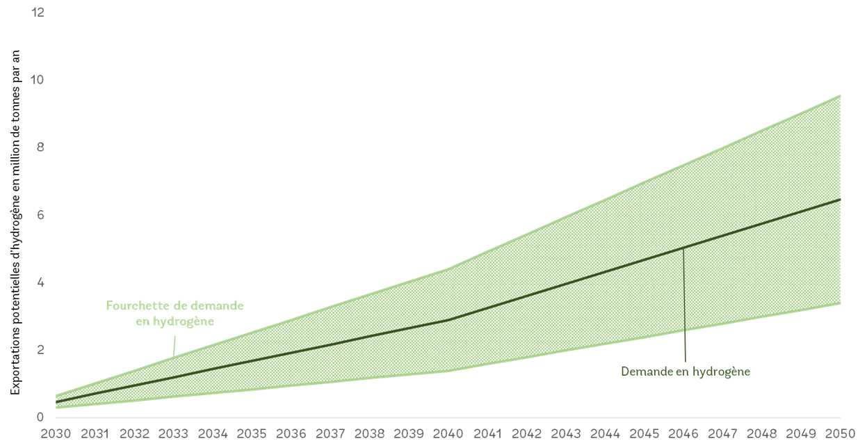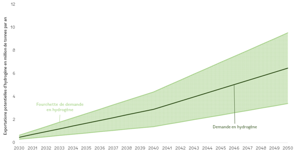 Figure: Les exportations mondiales d’hydrogène provenant du Maroc pourraient atteindre entre 3,5 et 9,5 millions de tonnes d’ici 2050