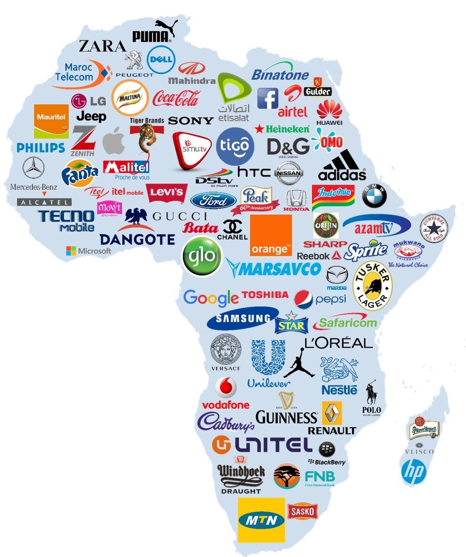 Les noms de marques anciennes et ancrées comme Coca-Cola et Nike (qui sont à la pointe du branding) ont à leur disposition le support historique de leurs consommateurs et des parts de marché proportionnelles à cette loyauté. Selon les dernières études, le paysage économique reste toujours aussi asymétrique. La principale raison reste une très faible présence (22 marques issues de 5 pays [1]) dans le Top 100 des marques ayant le plus de valeur / les plus reconnues, implantées en Afrique. Les 78 autres marques internationales créent 99% de la valeur totale des marques du continent. Aucune marque Nord/Ouest Africaine n’est présente dans ce Top 100.